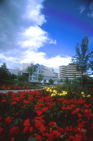 Back To Photo Menu Page Back To Communities Photo Menu Page Downtown Flowers This photograph was taken in downtown Anchorage across the street from the 5th Avenue Mall. In the background you can see Anchorage's Performing Arts Theatre. Click on the picture to send it as a postcard to a friend!