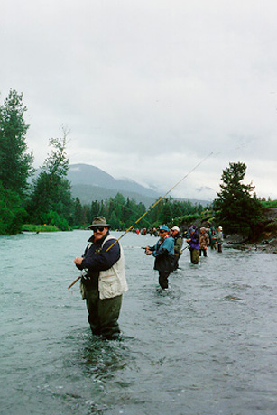 Fishing on the Russian River Alaska residents and travelers alike try their hand at catching red salmon on the Russian River at the confluence of the Kenai River.